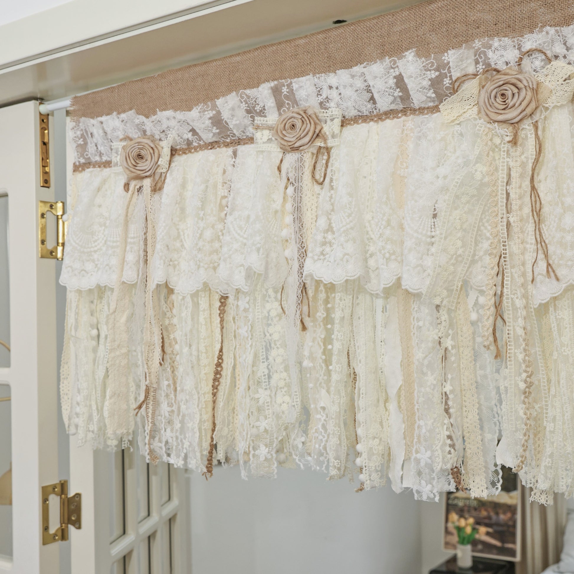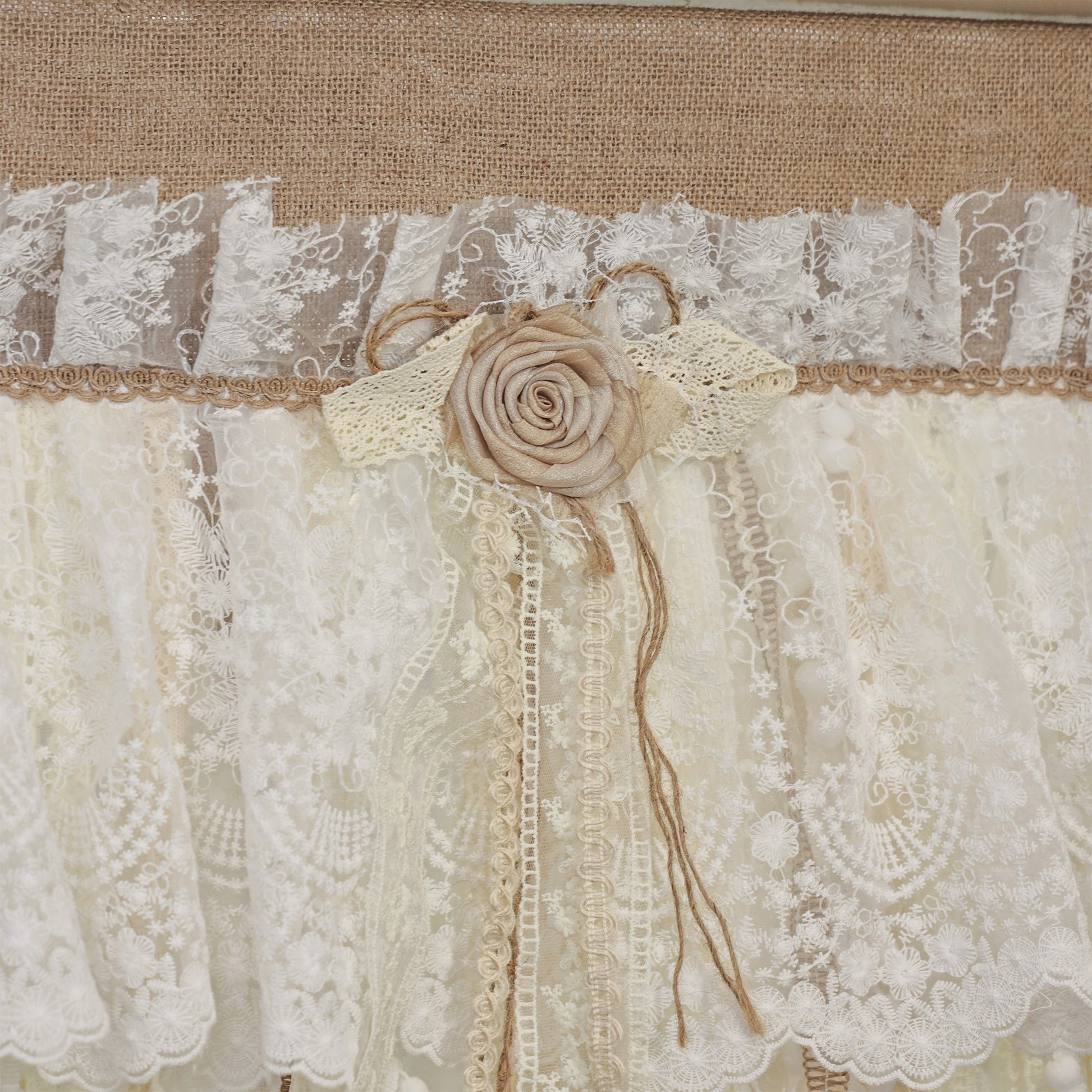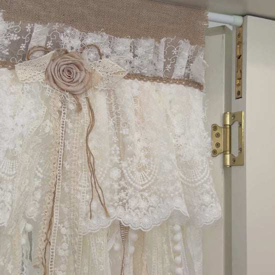 Rustic Unique Burlap Beige ivory Lace Bedroom Window Curtains Valance