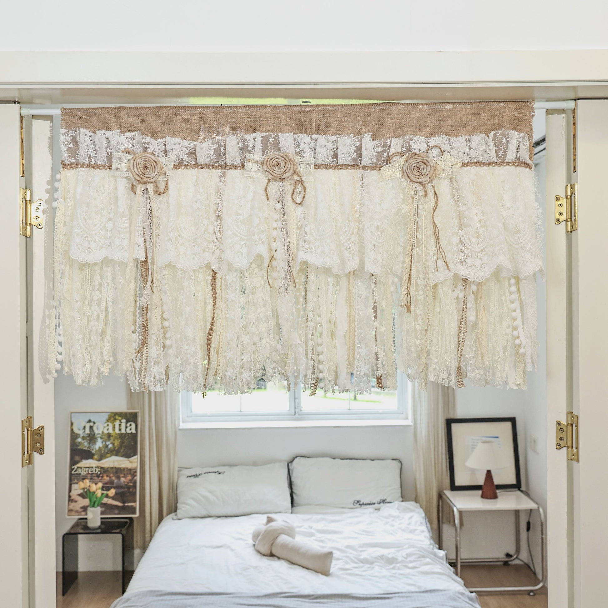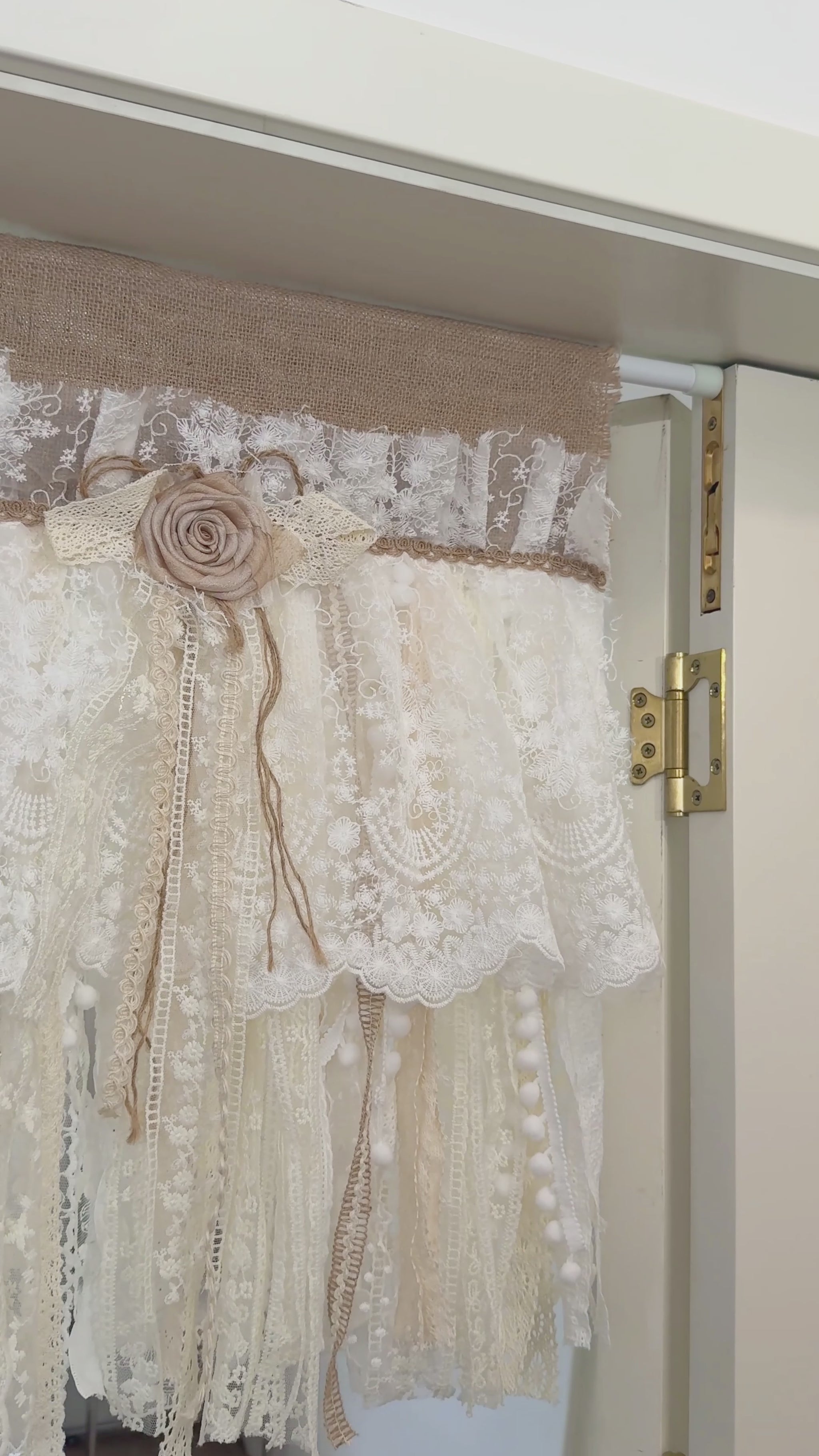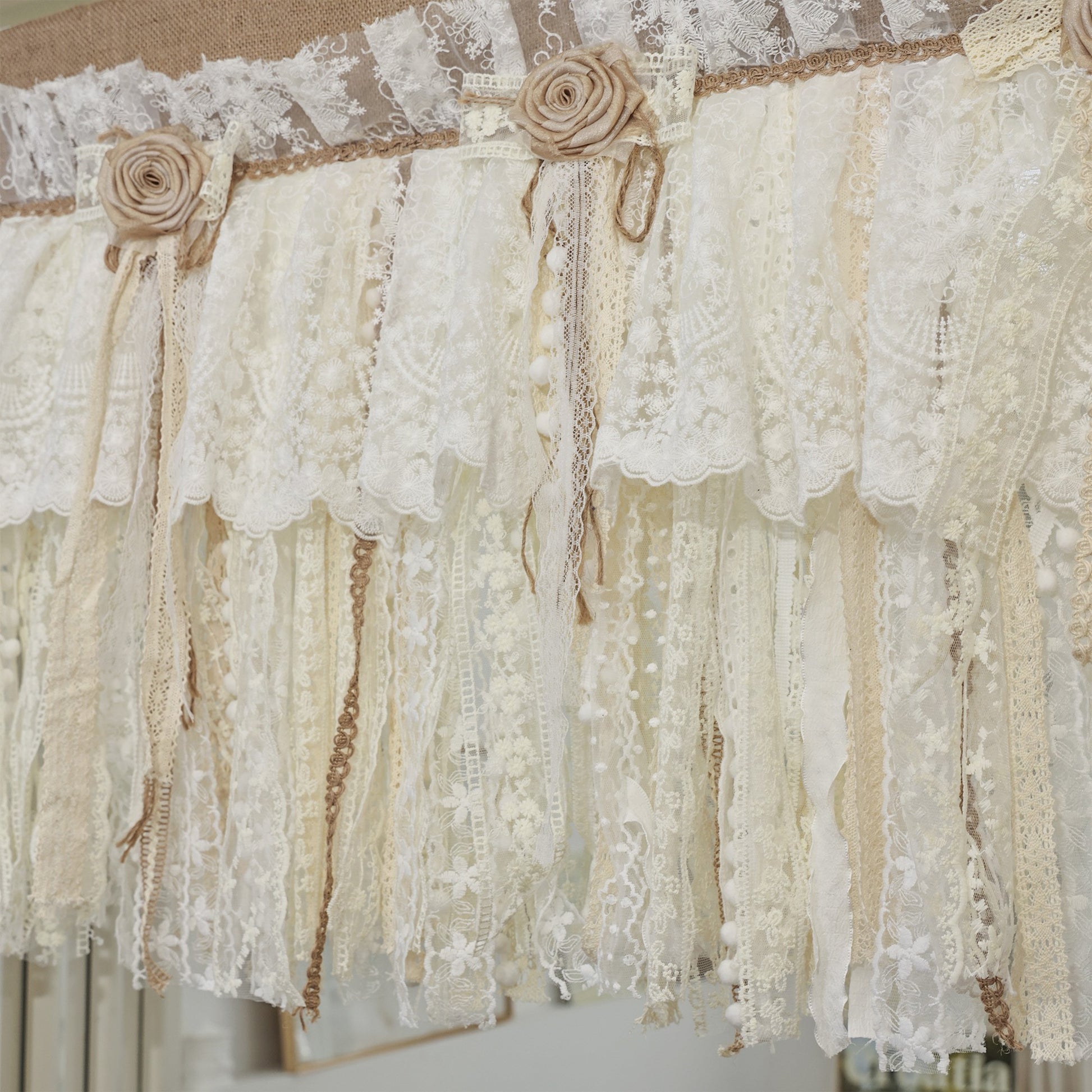 Rustic Unique Burlap Beige ivory Lace Bedroom Window Curtains Valance